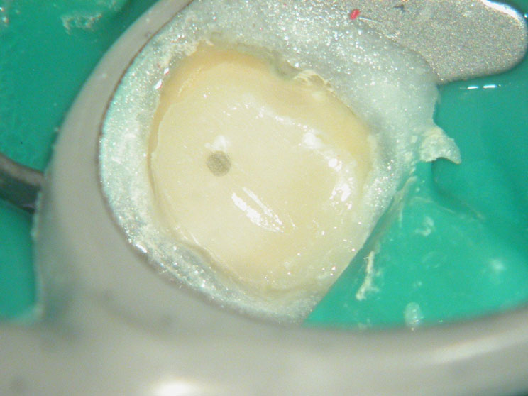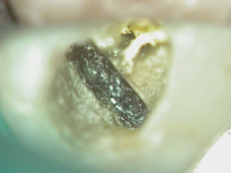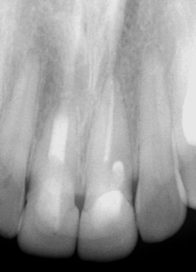 Central incisor referred after previous clinician had accessed the tooth and was unable to locate the calcified canal.