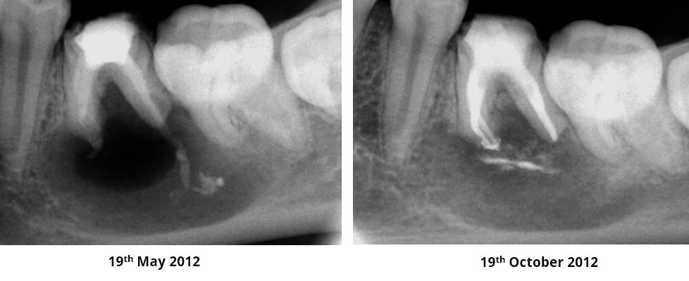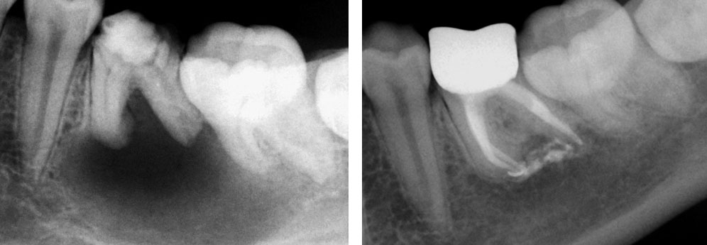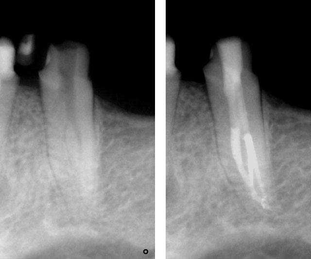 Notes: This is endo done for a “holding period” for implants later on. Healing of bone ensures a more favorable environment for implant placement.