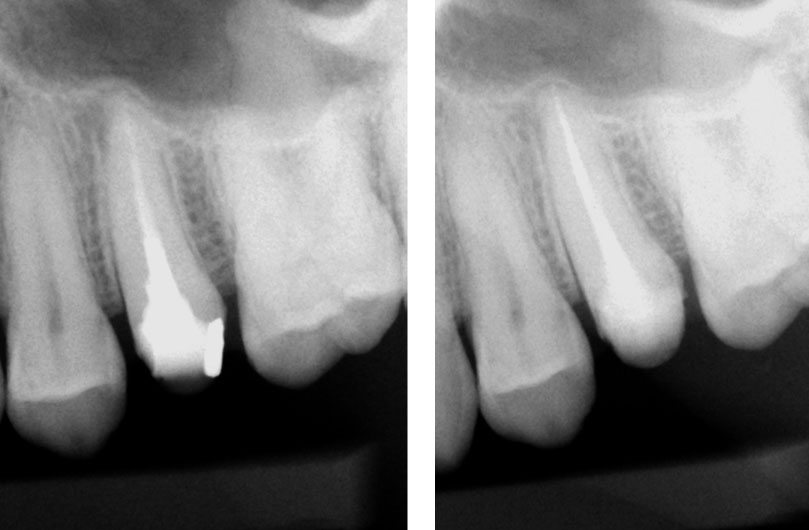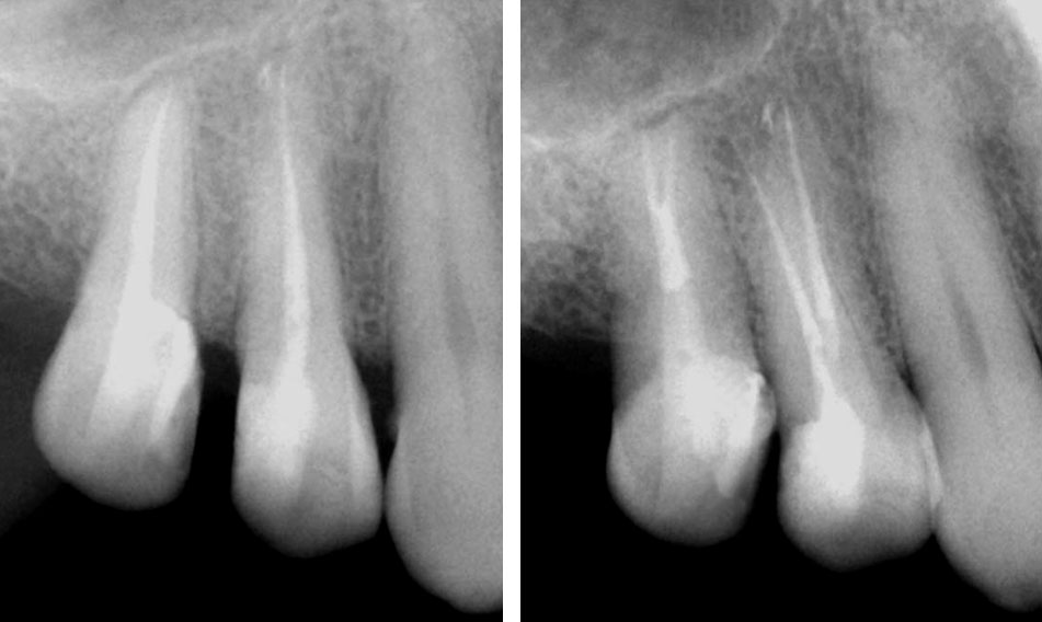 Maxillary central and lateral incisor with history of previous Endodontic therapy and root-end resection