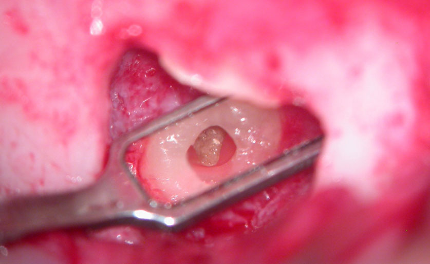 • Surgical Curettage of lesion and Apicoectomy of right central incisor.